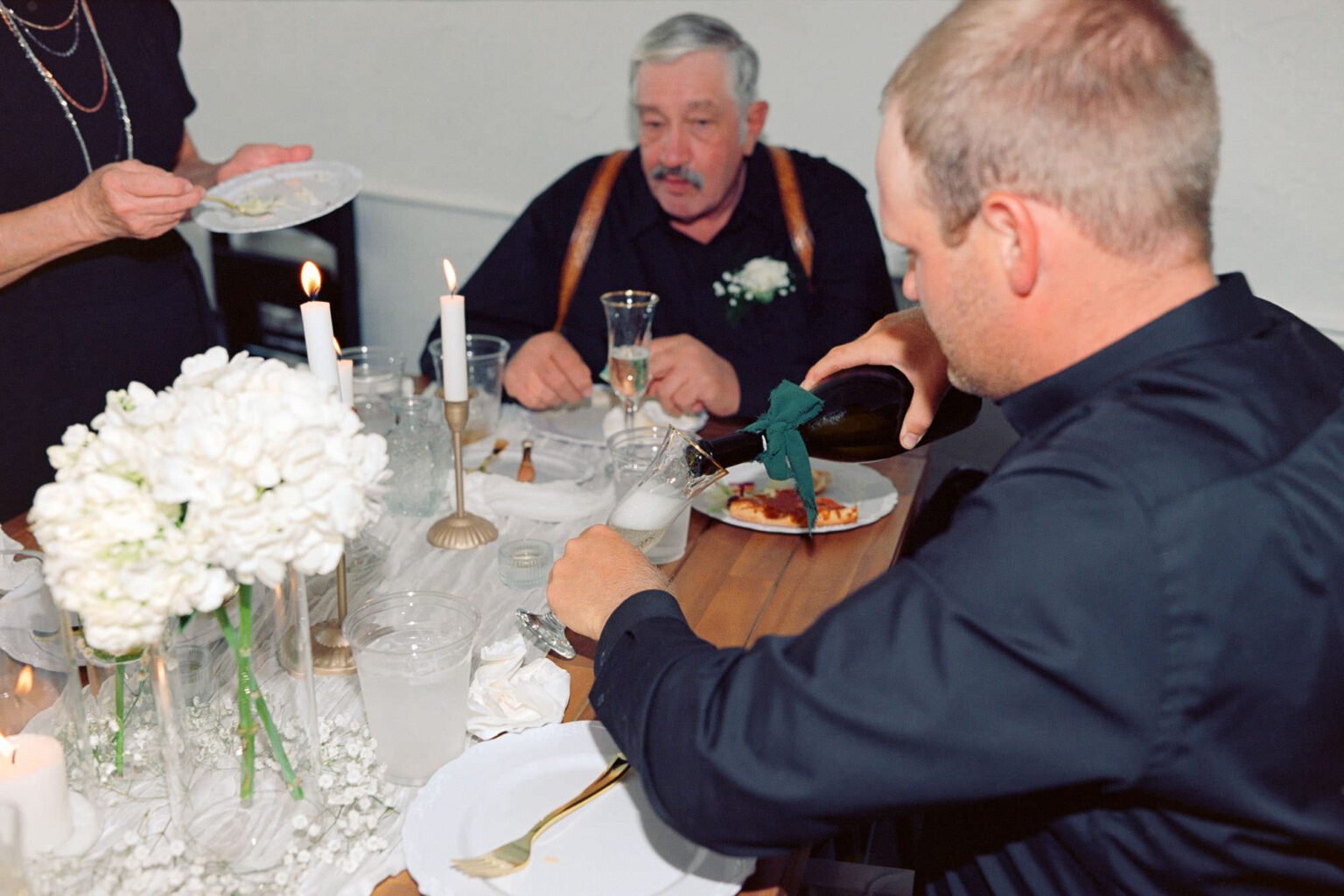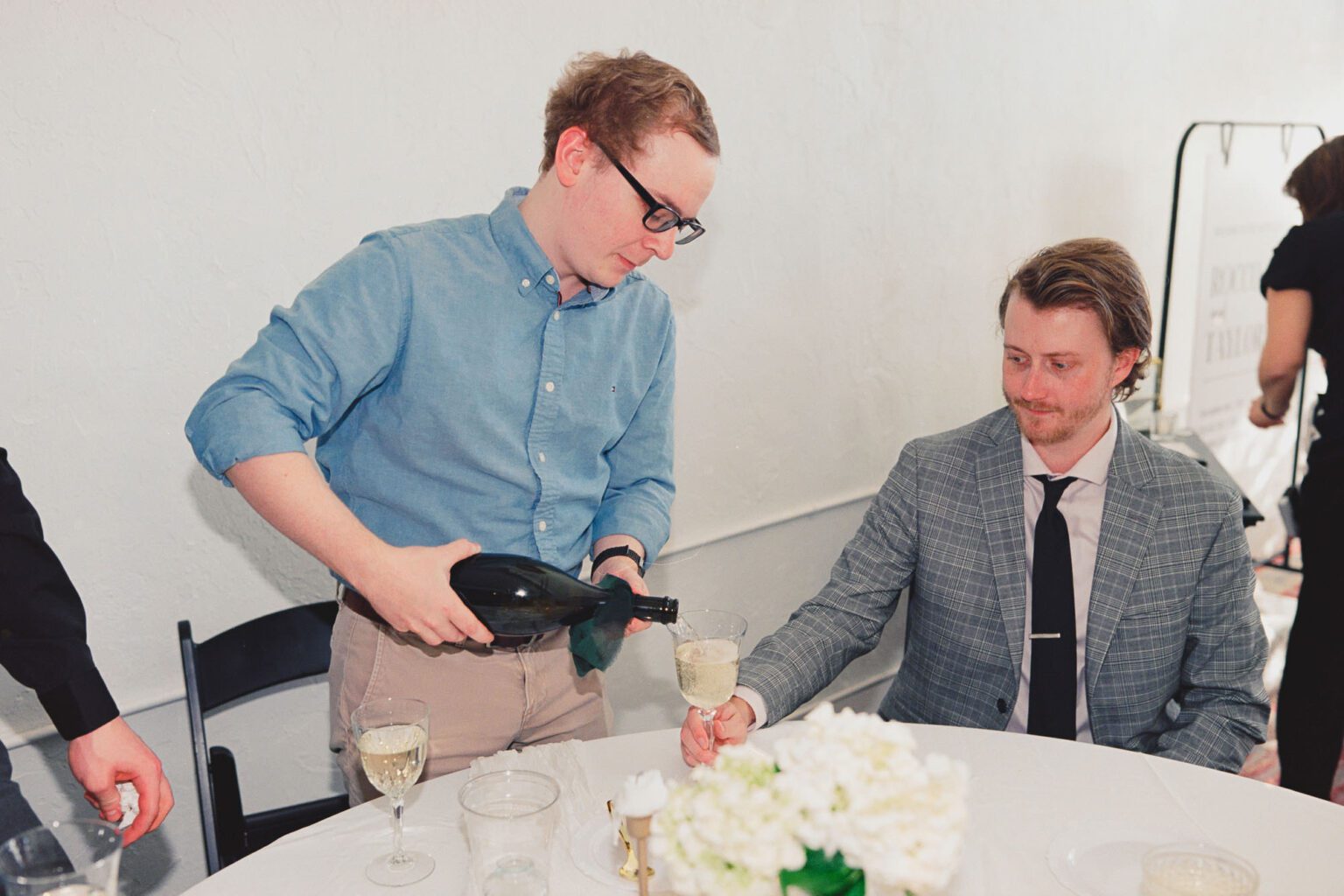 They chose a small North Texas wedding venue that supported a laid-back celebration. Lunch was pizza. Champagne was shared freely. The focus stayed on being together, not on production or tradition for tradition’s sake.